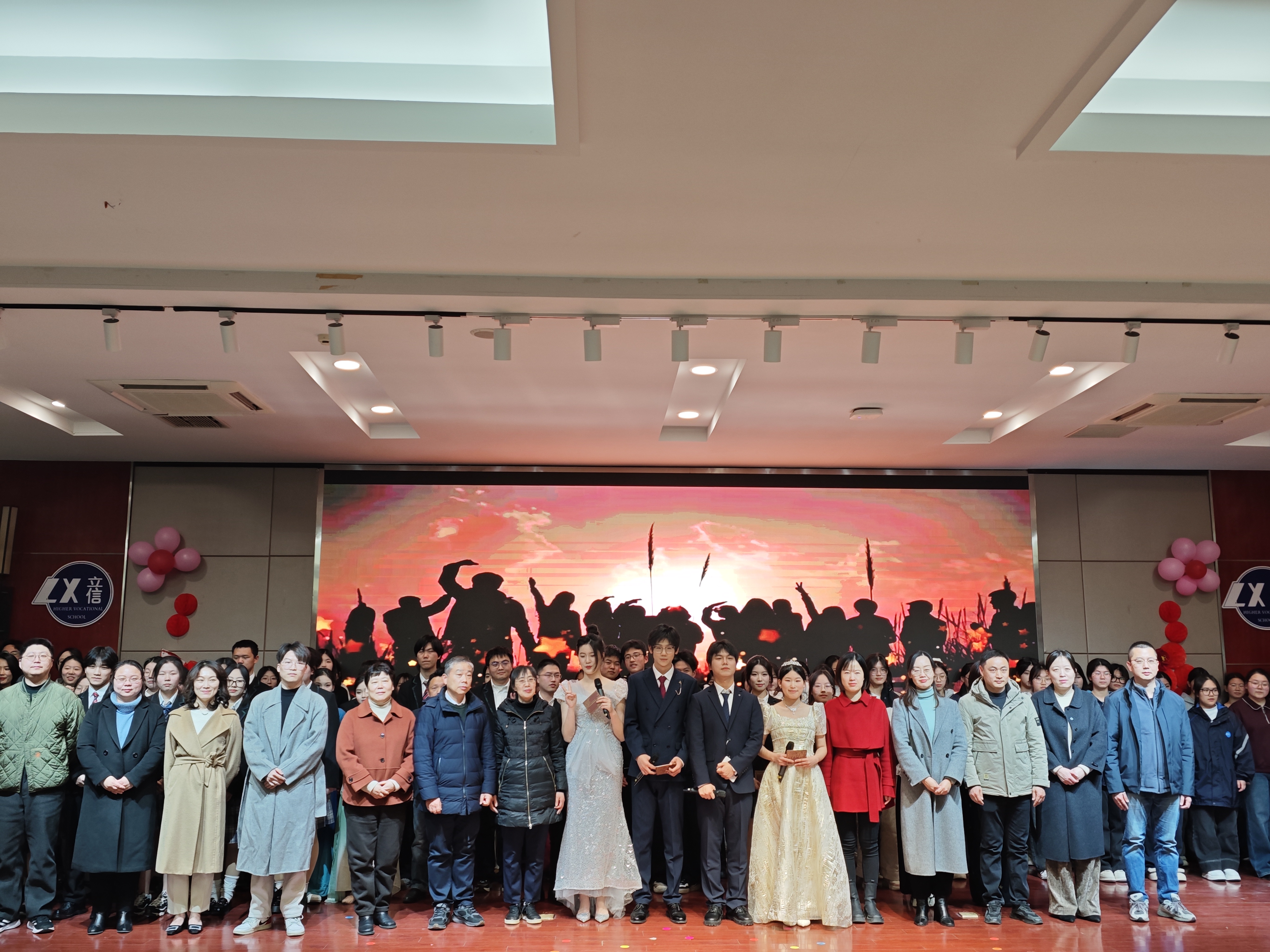 第二篇章"马到成功·星光共耀"聚焦成长与荣誉。学生自导自演的心理剧《猫爪与心痕》表演细腻,触动心灵。随后进行的表彰环节将晚会推向高潮。过去一学年,我系学子在各级各类比赛中屡获佳绩,世界职业院校技能大赛、无锡市技能大赛、创新创业及职业生涯规划大赛等赛事的获奖者依次登台受奖。一份份证书,既是对过往努力的认可,更是对未来的激励。青年教师们献上活泼的舞蹈《像你这样的朋友》,展现师生深厚情谊;韩语特色班同学演唱的《春雪》悠扬动听,传递出新年的清新期盼;韩国外教李慧美老师也登台送上新年祝福,体现了中外师生和谐共融、携手迎新的温馨氛围。