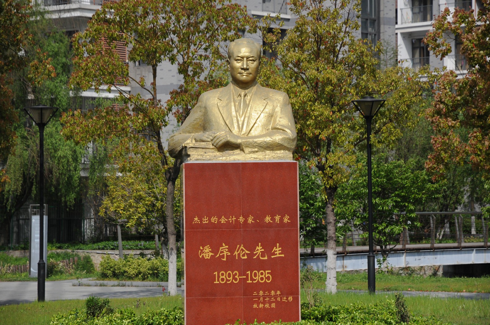“立信石”上闪耀着金色的校训。