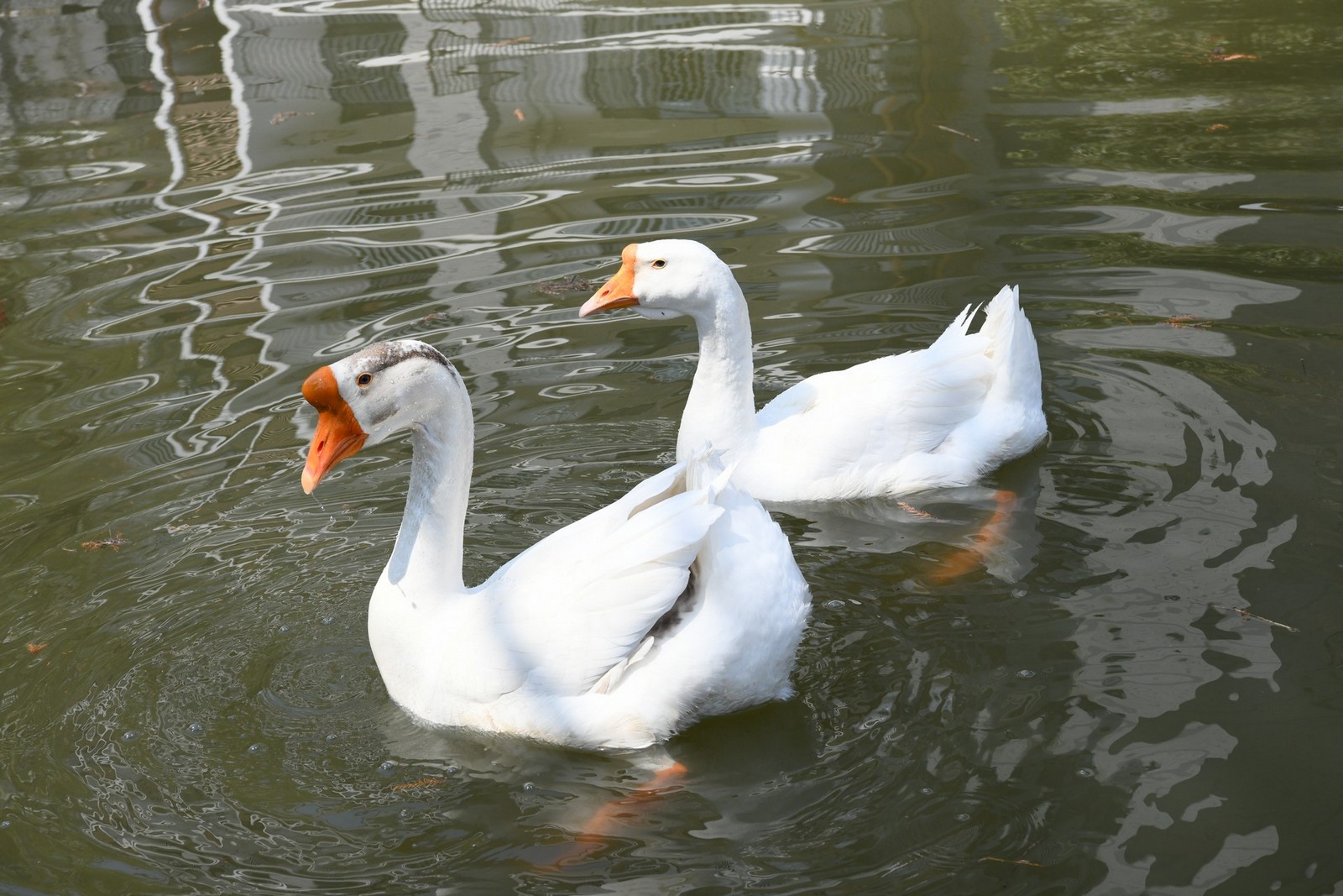 白毛浮绿水,红掌拨清波。